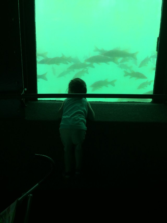 Kendall watching the fish from the underwater observatory.