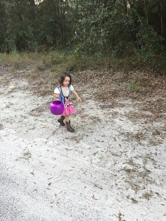 Kendall and dad heading up the driveway to go rick or reeting (as Kendall would say)