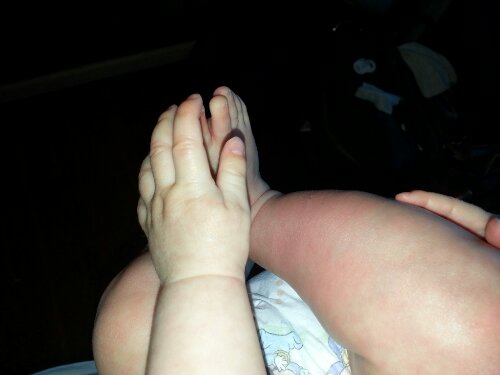 A shot of some baby fat and K playing with her feet.